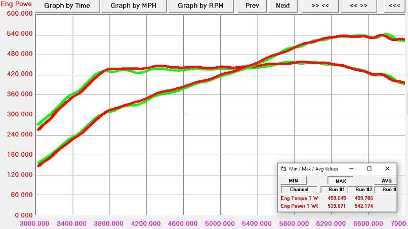 When developing this turbo upgrade, we were aiming for a good balance of response and overall power potential so that the turbo would be a pleasure to drive on the street as well as on track. As a result, the EQT Vortex offers excellent spool and response throughout the powerband along with a very flat torque curve that carries nearly to redline. We also sized this turbo to be a perfect match for the stock engine internals and control systems.